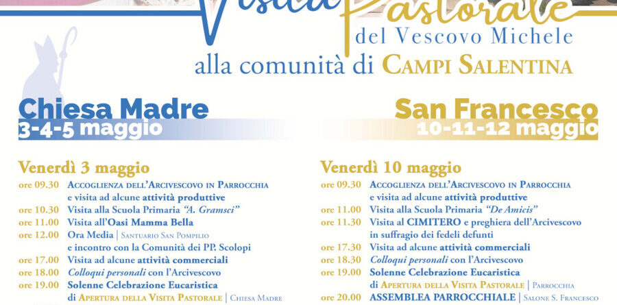 Ore 10.30: S. Messa e conclusione della Visita Pastorale in parrocchia